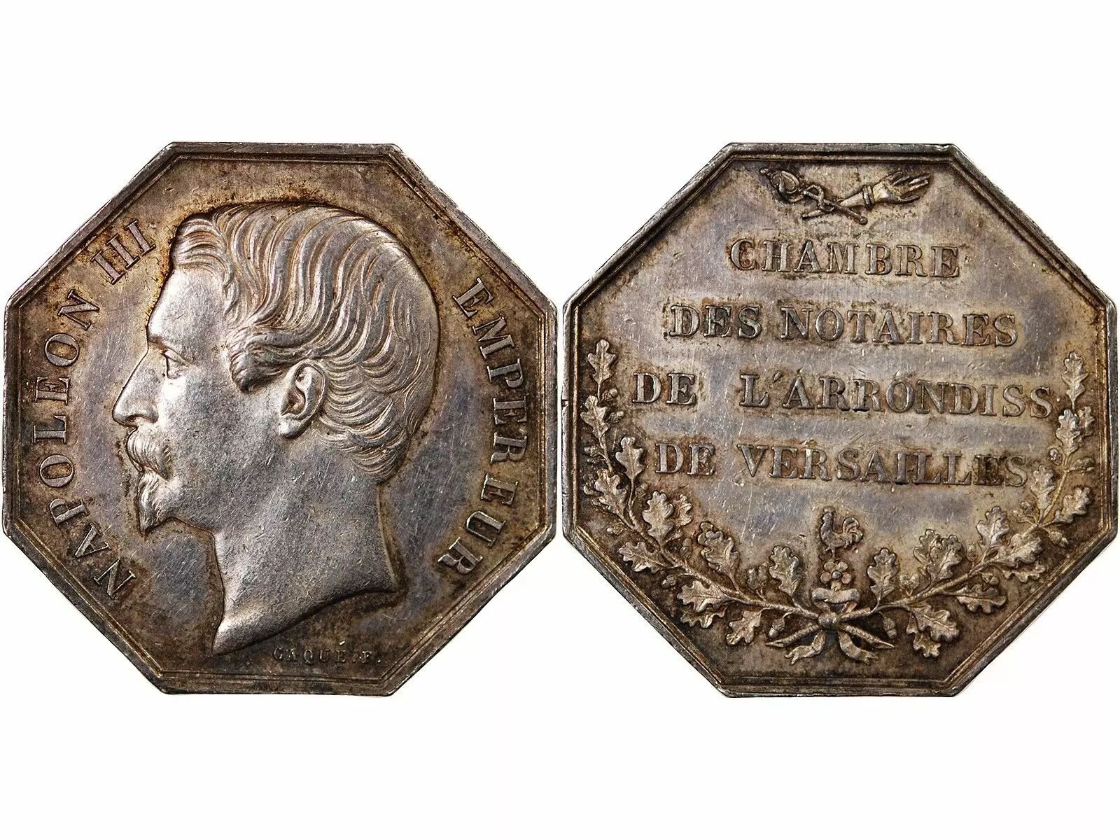 France Notaires, Versailles, Napoleon III - Jeton Argent Poinçon Main (1845-1860)