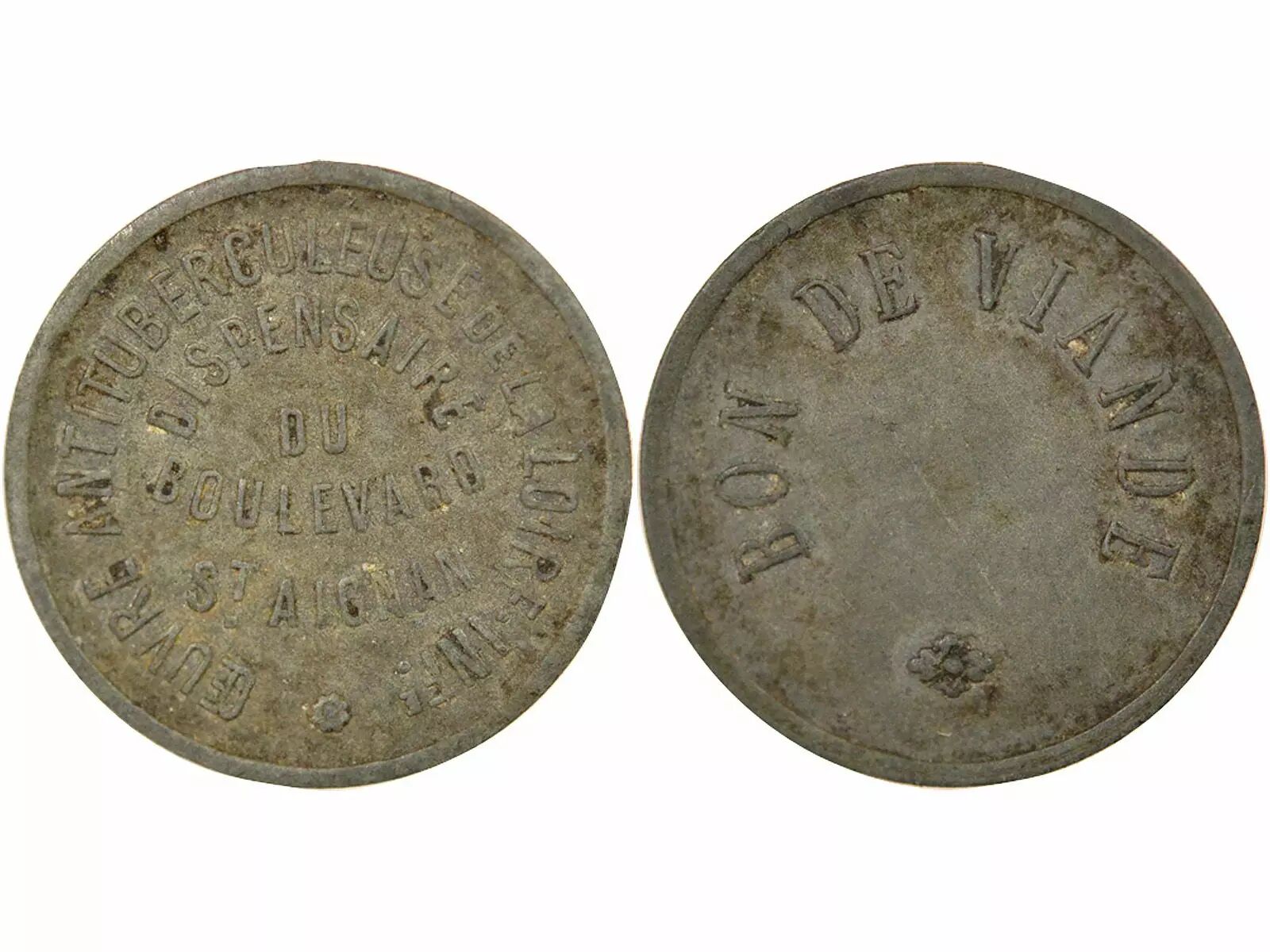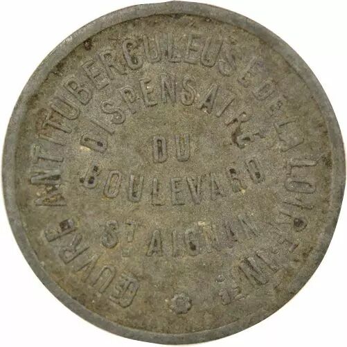 Avers : * ?UVRE ANTITUBERCULEUSE DE LA LOIRE . INFE. / DISPENSAIRE / DU / BOULEVARD / ST. AIGNAN