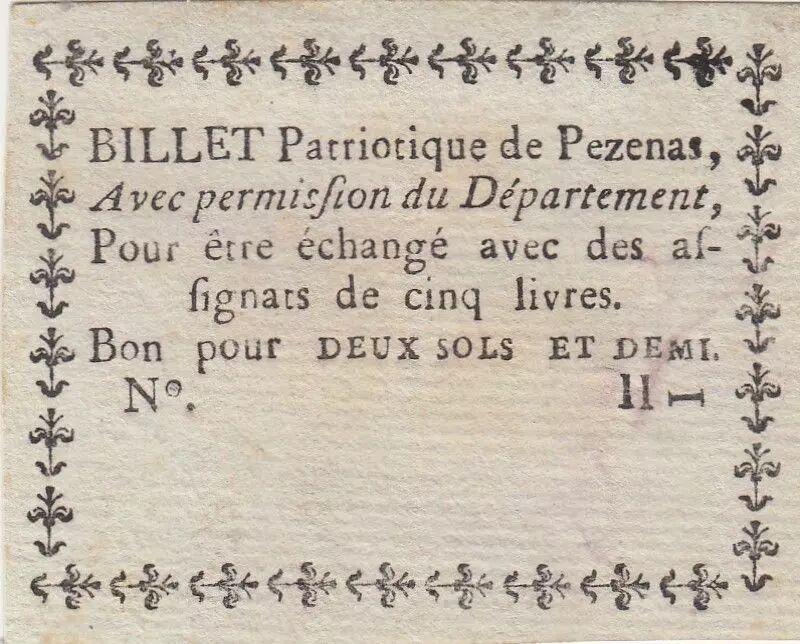 Billet Patriotique - 1792 small tasks, folds, glued at reverse