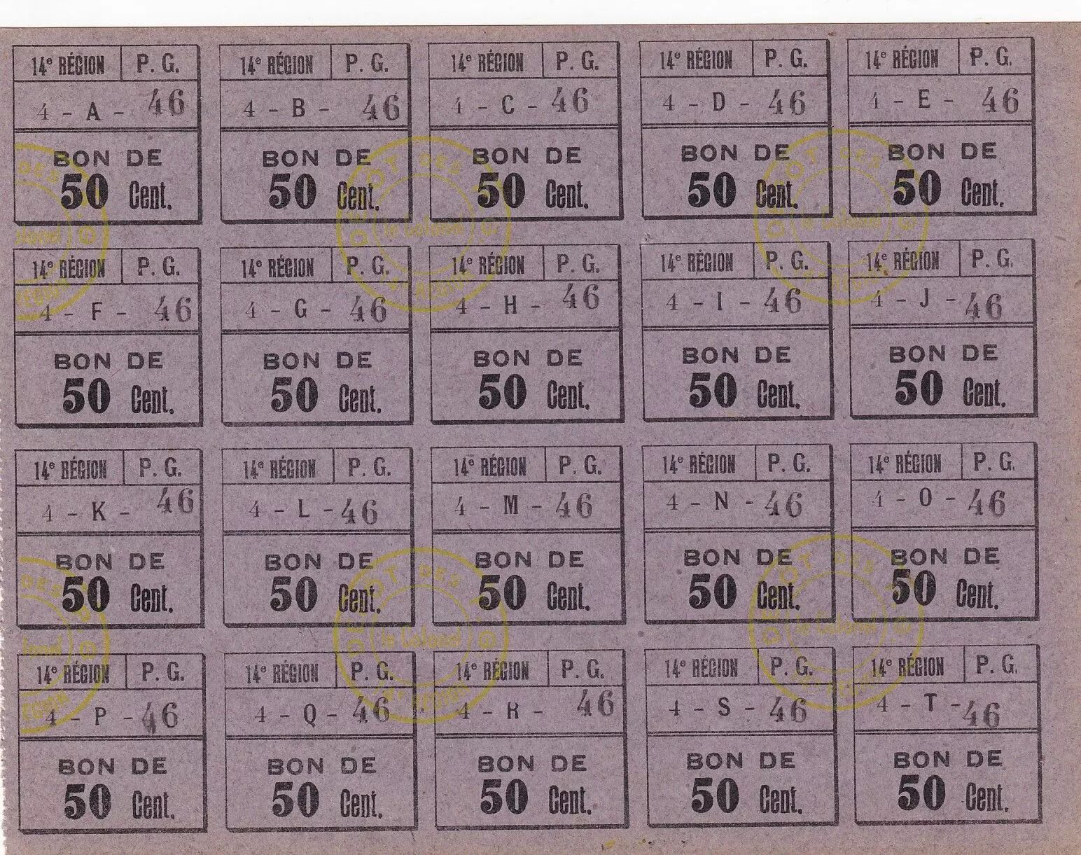 Accueil > Archivage > archivage-Billets Français > France Planche 50 cent x 20 ex - Prisonniers de guerre - 14ème région - Lyon - Première Guerre Mondiale