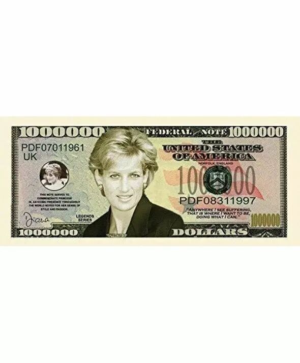 Fancy Note 1 000 000 Dollars "Lady Diana Princess of Wales" UK