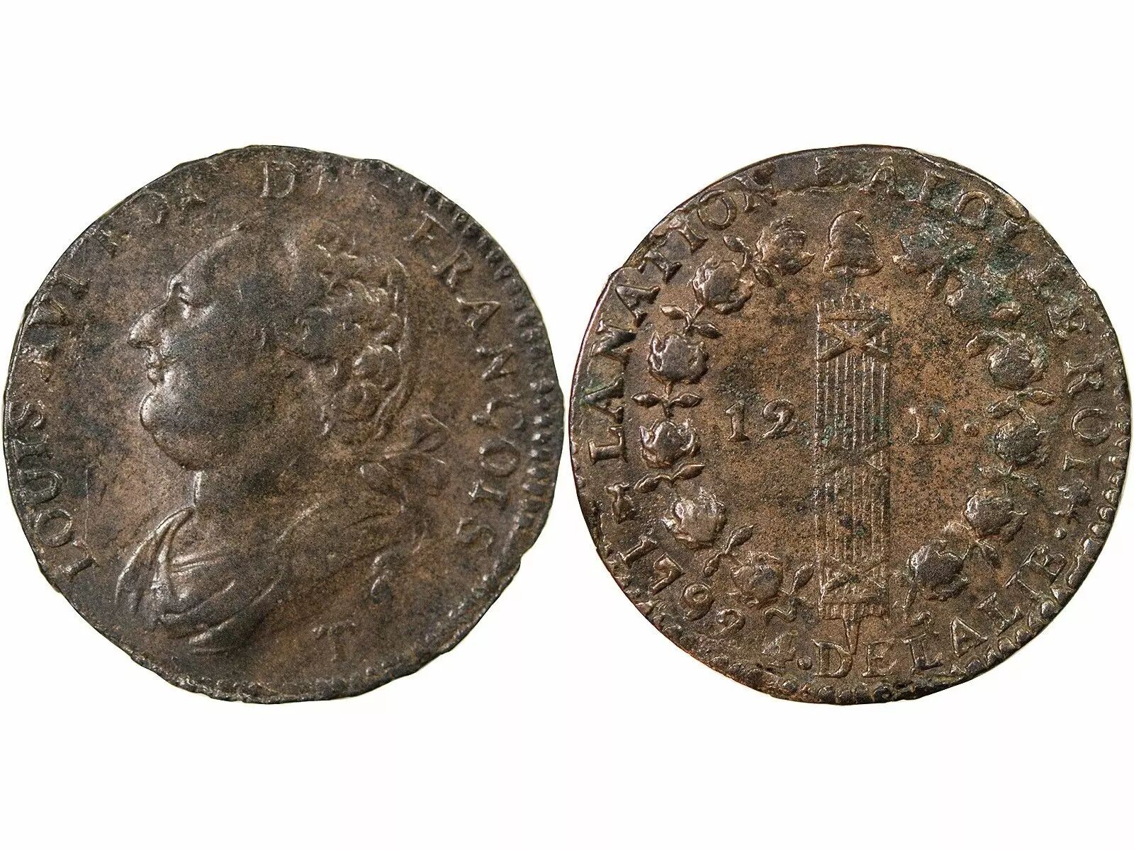 Accueil > Monnaies françaises (470 à 2002) > Monnaies Royales (987 à 1870) > Louis XVI (1754-1793) > France Revolution Francaise, Constitution - 12 Deniers 1792 T Nantes