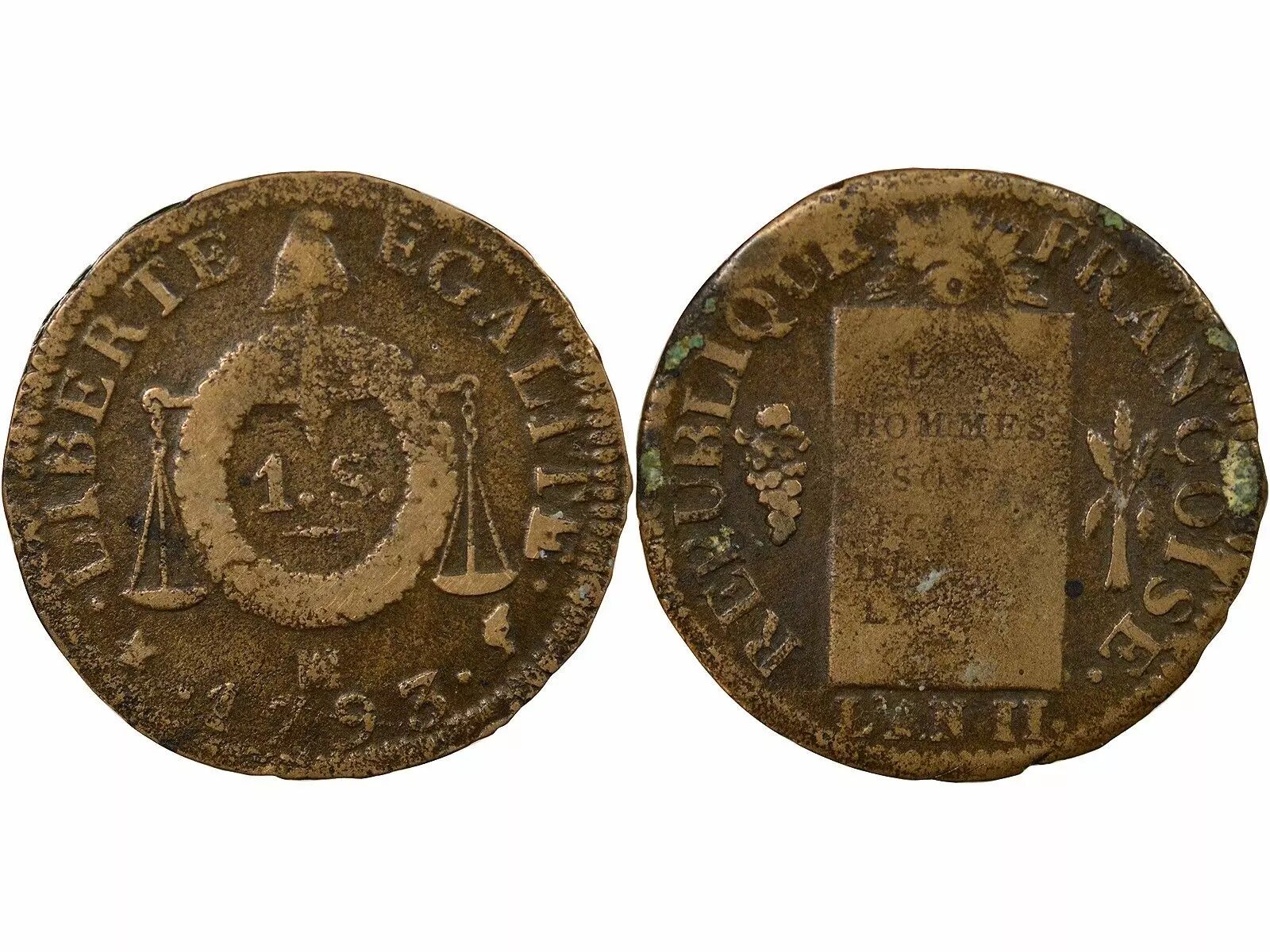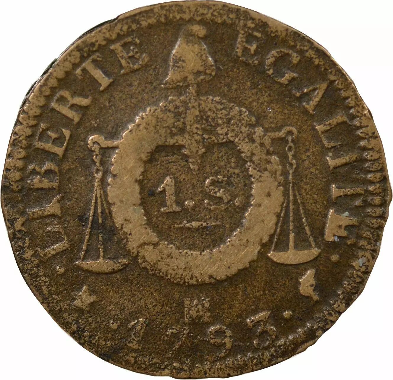 Accueil > Archivage > archivage-Monnaies françaises (470 à 2002) > France Revolution Francaise, Convention - Sol Aux Balances 1793 MA Marseille