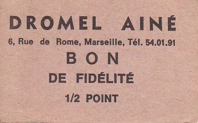 Banknote France Sans valeur Marseille Bon de fidélité. 1/2 Pt. DROMEL AINE