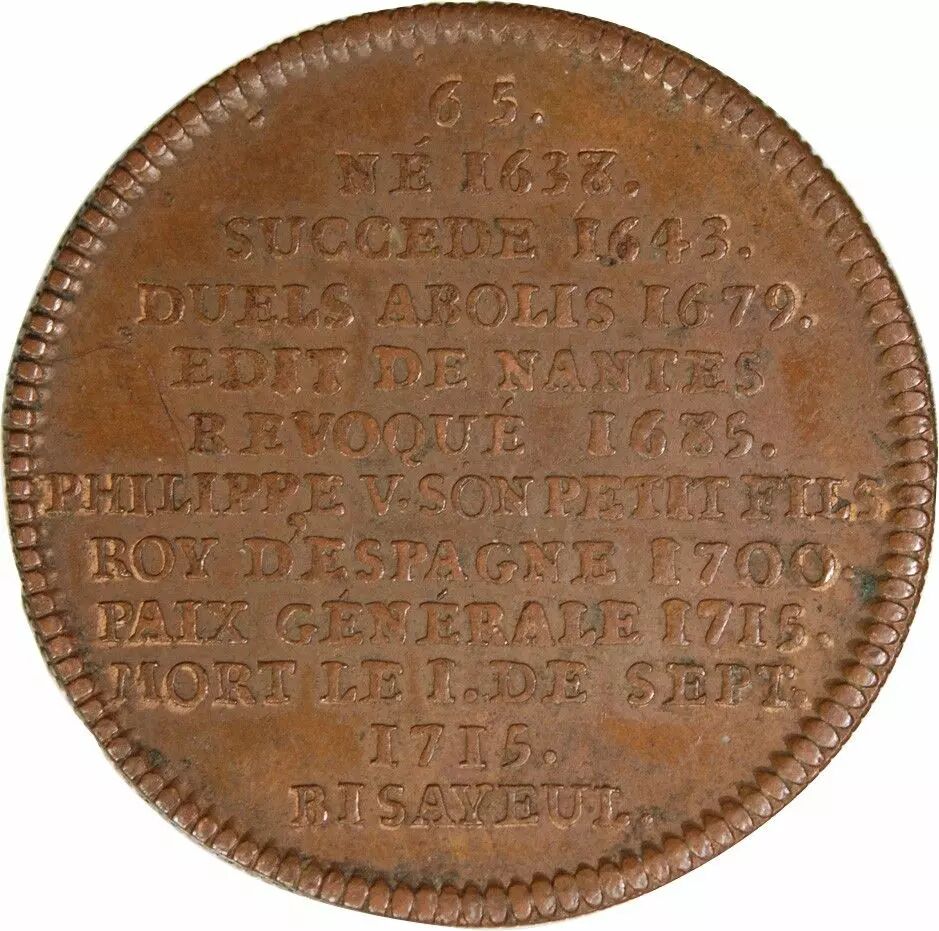 France Séarie Métallique des Rois de France, Louis XIV - Jeton Cuivre