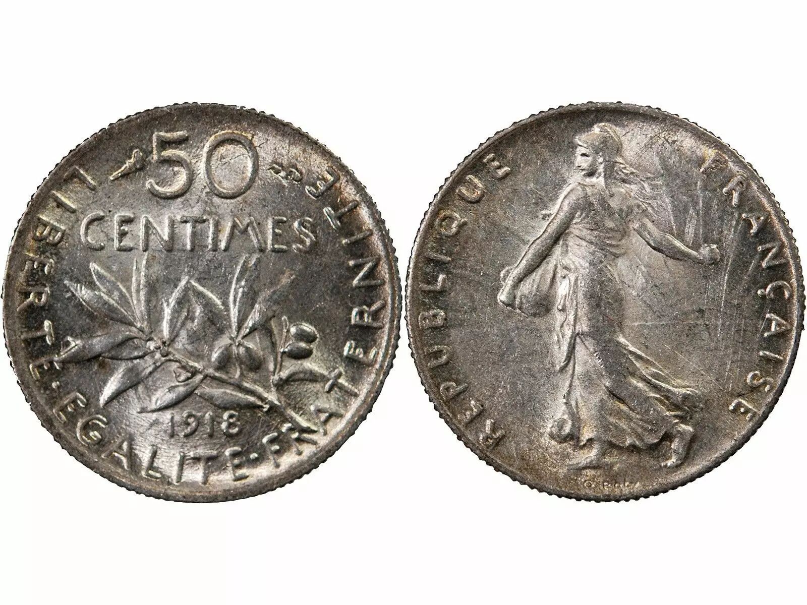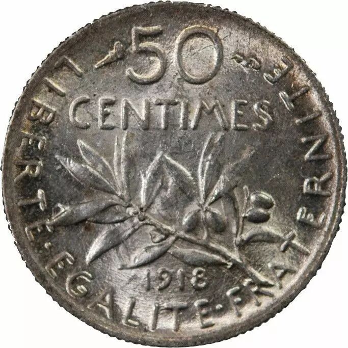 Pièce France Semeuse - 50 Centimes Argent - 1918 Paris