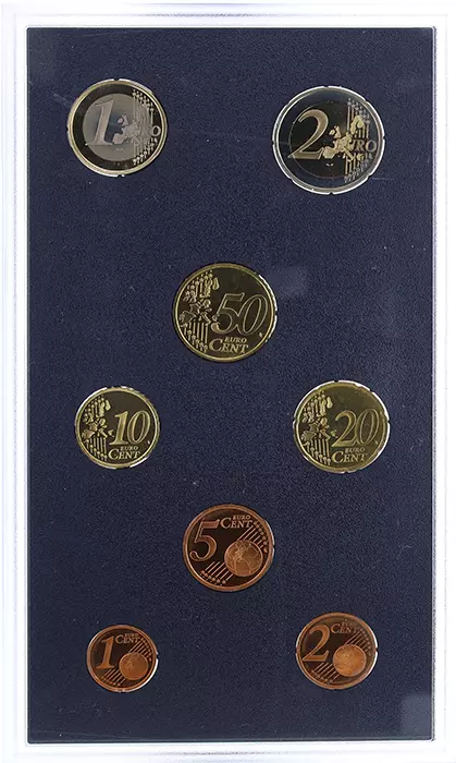 série incluant les 8 monnaies de 1 centime à 2 euros, en Frappe BE, sans certificat et sans coffret, certaines monnaies patinées