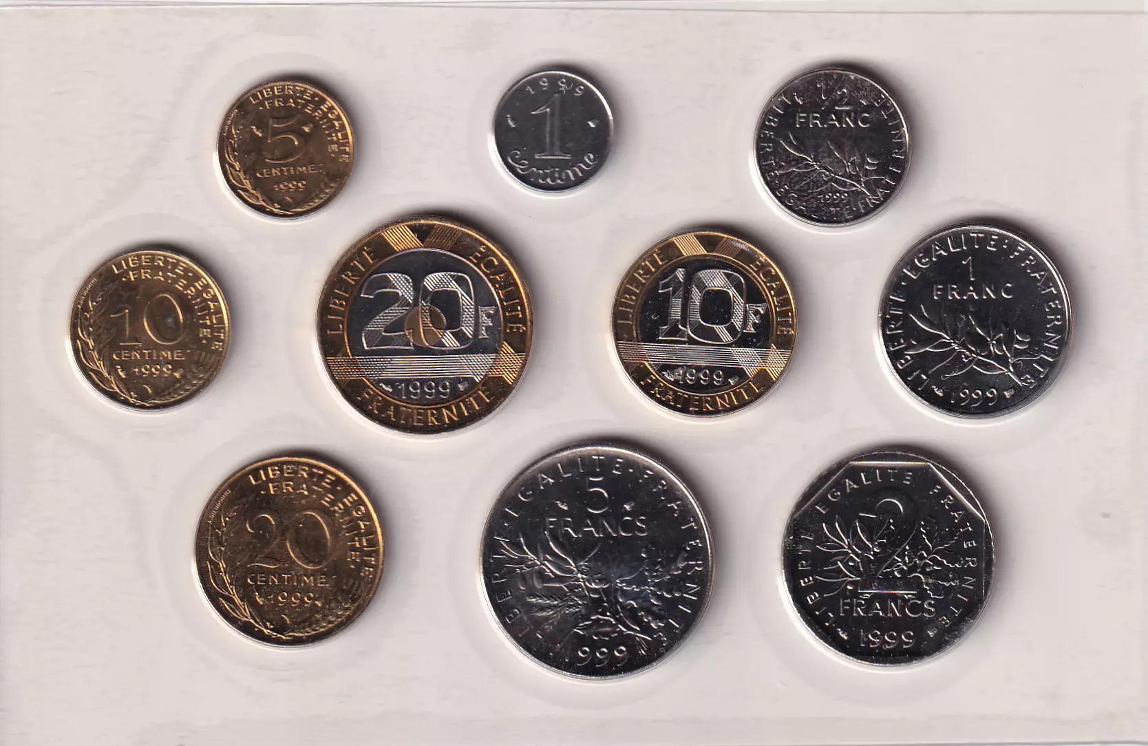 Incluing 10 coins 1 cent to 20 francs.