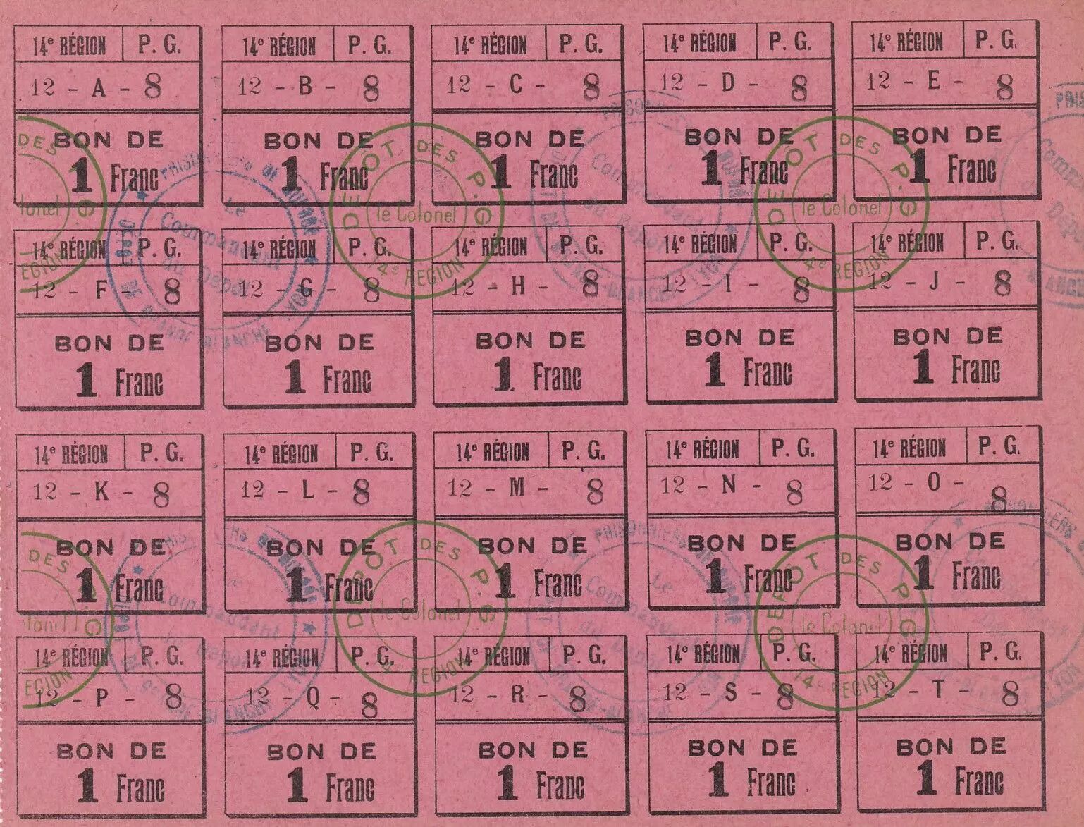 Home > > France Sheet of 1 franc x 20 ex - Prisonniers de guerre - 14ème région - Lyon - WWI