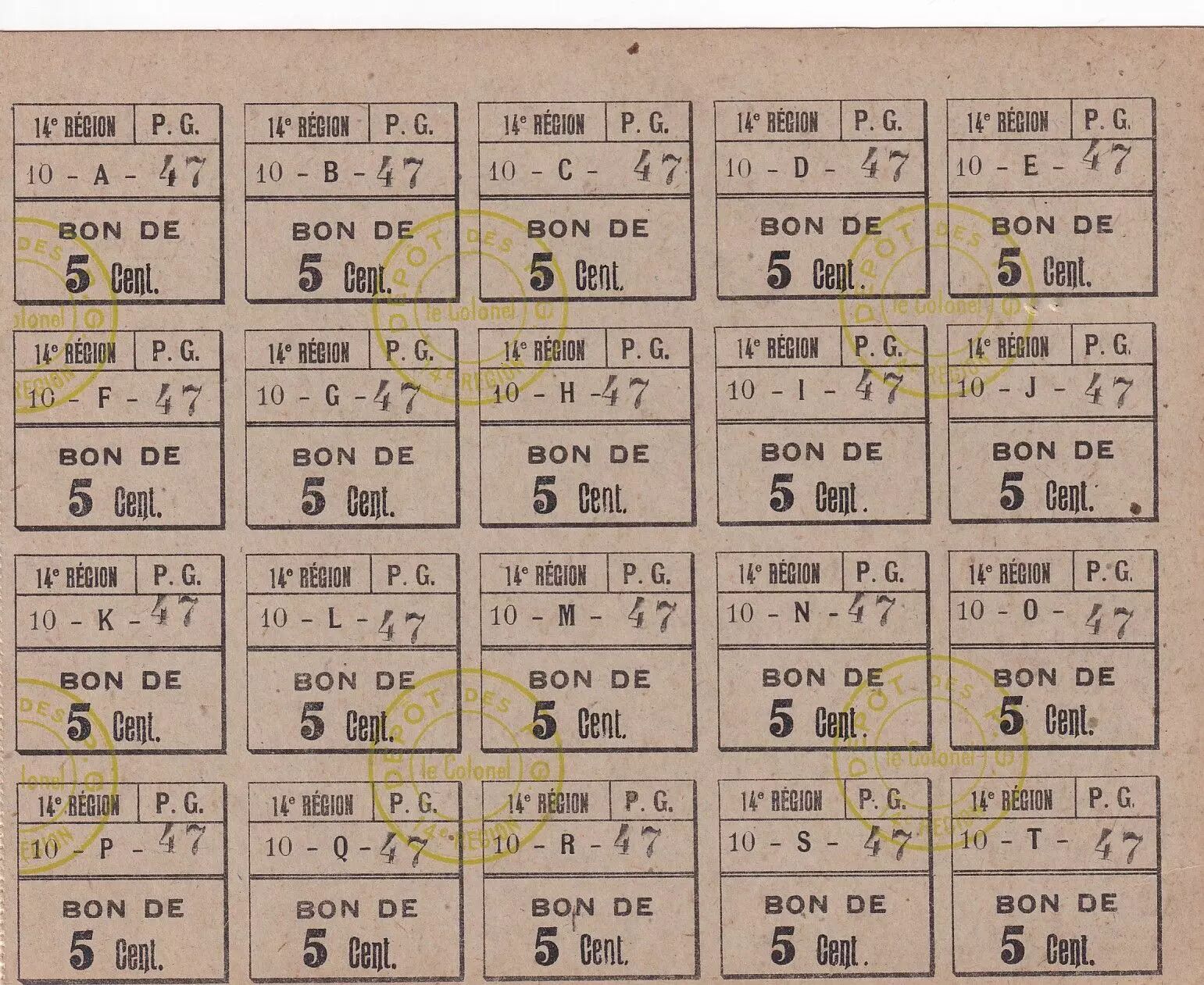 Banknote France Sheet of 5 cent x 20 ex - Prisonniers de guerre - 14ème région - Lyon - WWI
