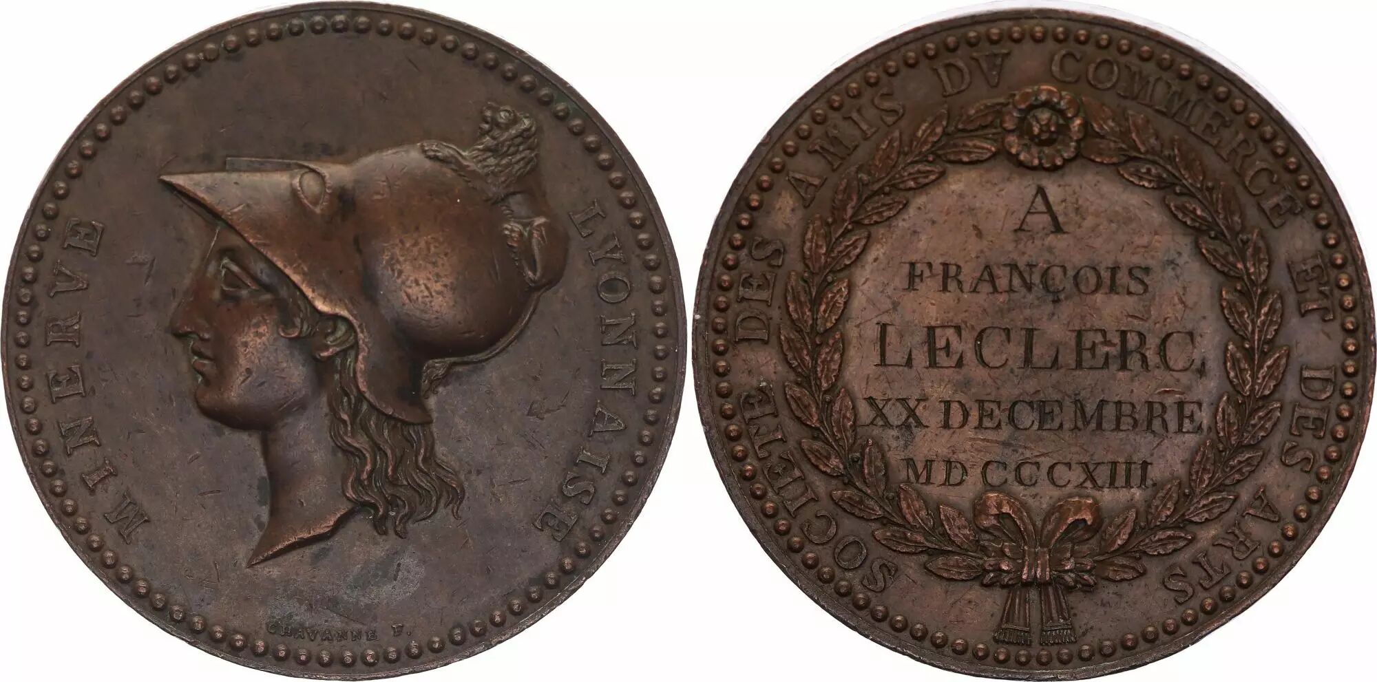 France Société des Amis du Commerce et des Arts - Minerve Lyonnaise - Bronze - 1813 par F. Chavannes