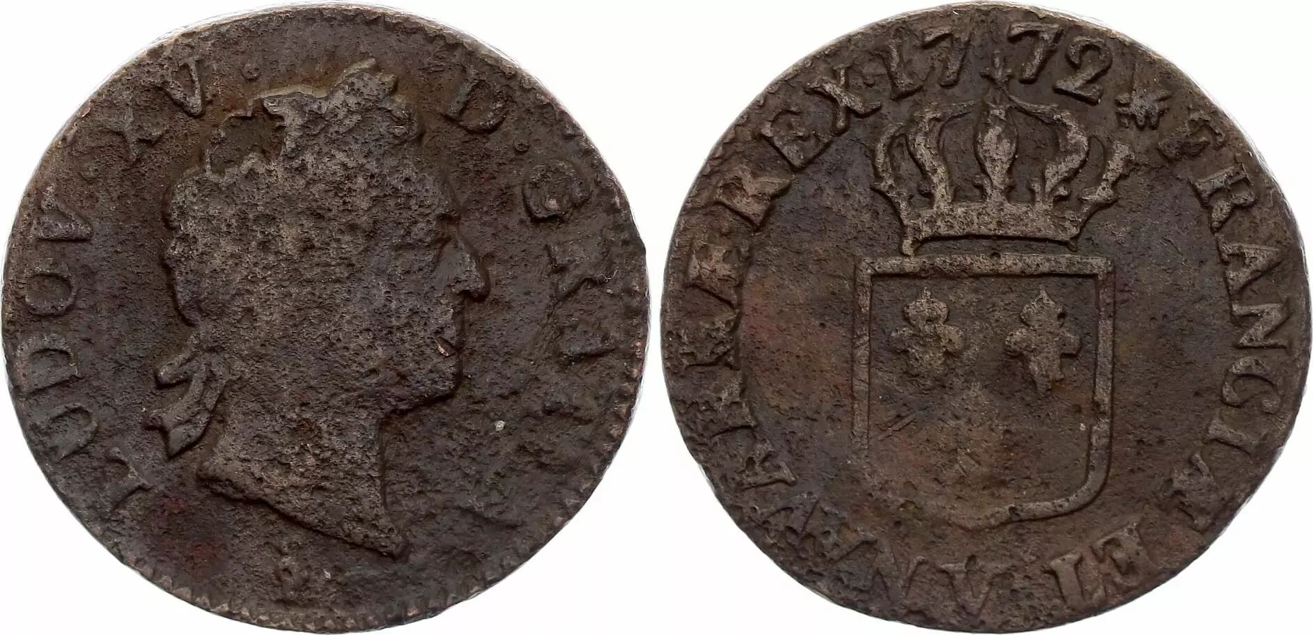 Coin France Sol Louis XV with an old head - 1771 V Troyes