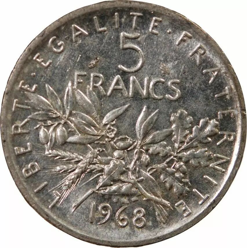 Coin France Sower - 5 Silver Francs - 1968 Paris