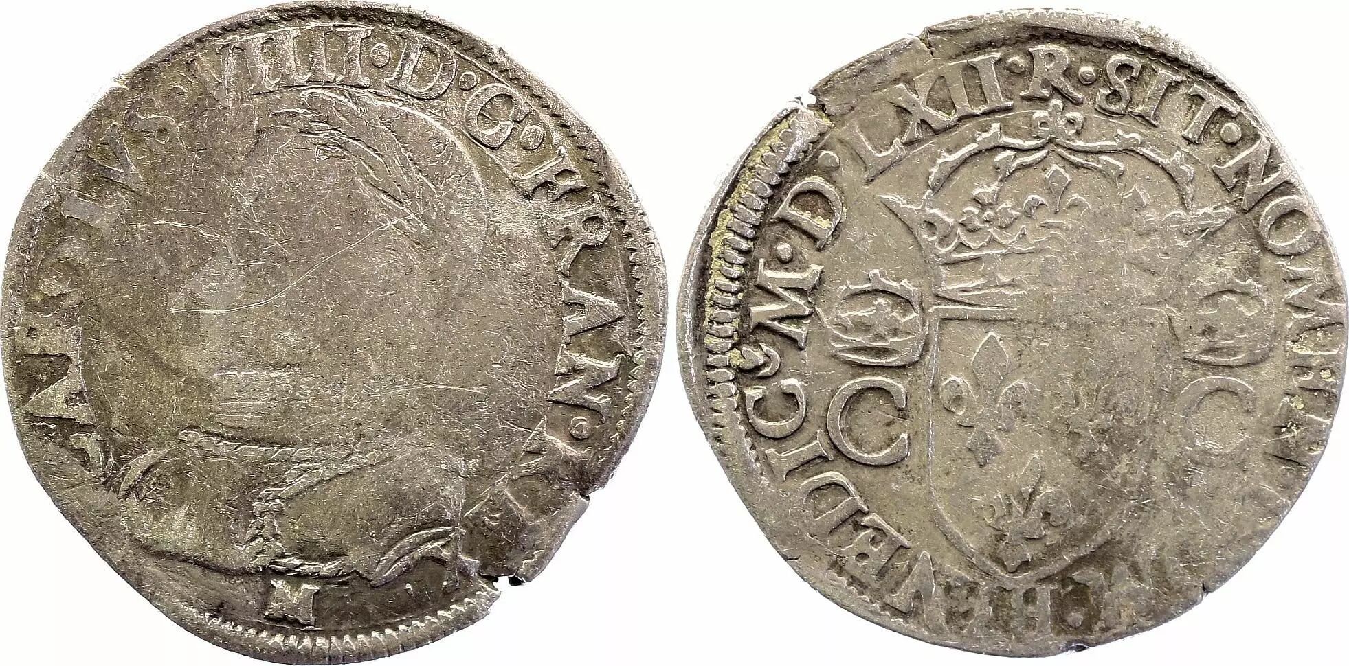 Pièce France Teston Charles IX - 1562 M Toulouse - Argent - 2 ème type - B +