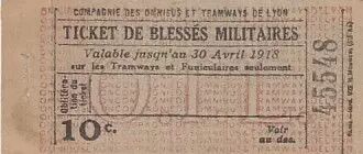 Banknote France Ticket for wounded soldiers - Compagnie des omnibus et tramways de Lyon
