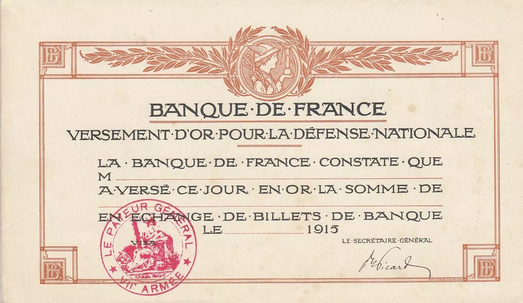 Accueil > Archivage > France Versement d'or pour la défense nationale vierge - 1915 - SUP