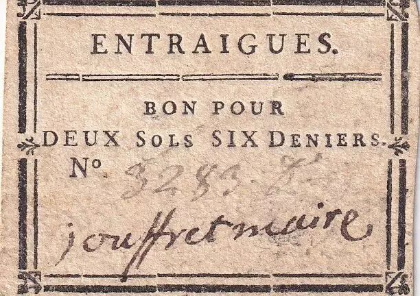Home > French Banknotes > Necessity Money (1789-1945) > Confidence Notes 1789-1793 > France Voucher for two sols - Six Deniers - Vaucluse - Entraigues - n°3289