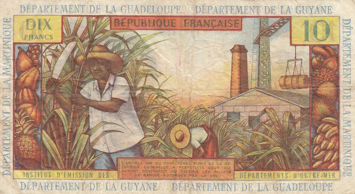 Home > > French Antilles 10 Francs Girl, sugar cane - 1964 - Serial Q.6 - F to VF - P.8b