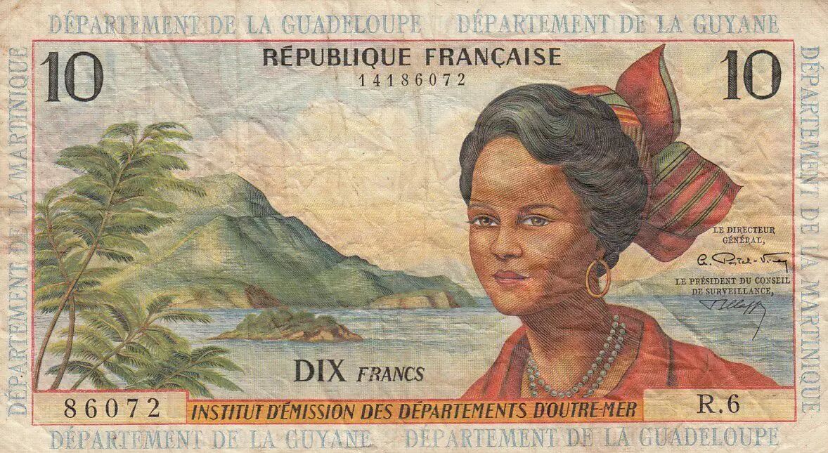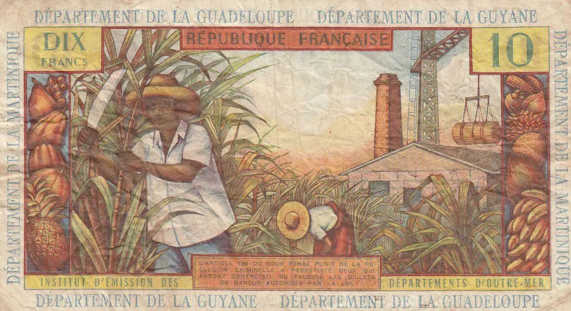 Home > > French Antilles 10 Francs Girl, sugar cane - 1964 - Serial R.6 - F to VF - P.8b