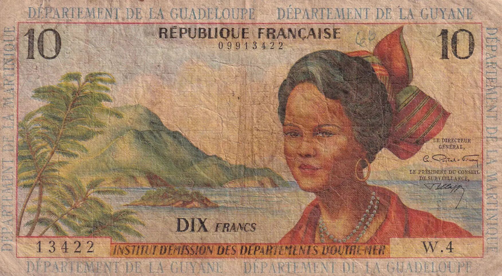 Home > > French Antilles 10 Francs Girl, sugar cane - 1964 - Serial W.4 - F - P.8b