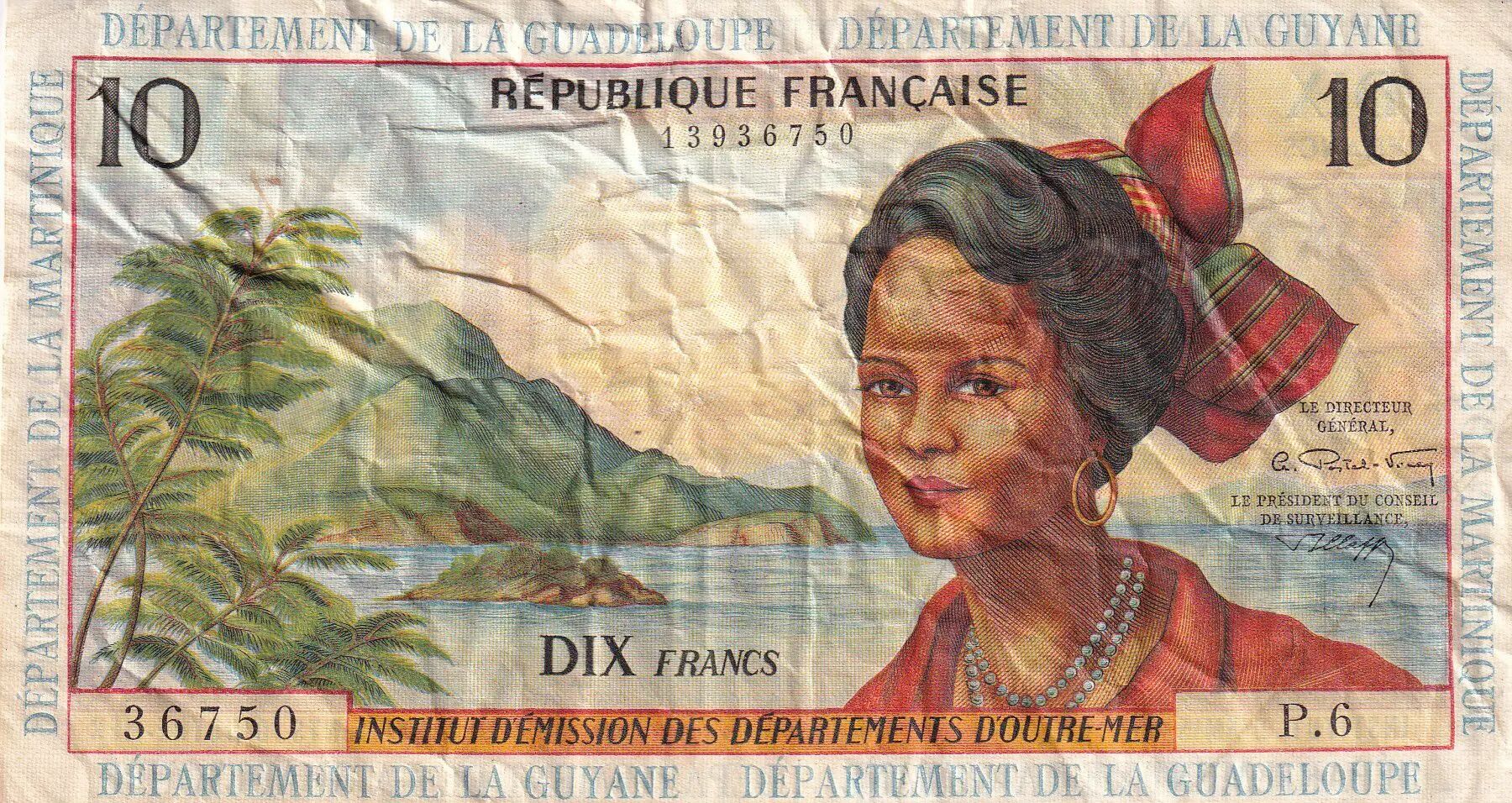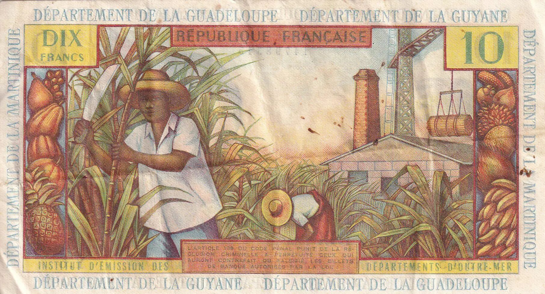 Home > World Banknotes > American Banknotes > French Antilles 10 Francs Girl, sugar cane - 1964 - Varieties serials - P.8b