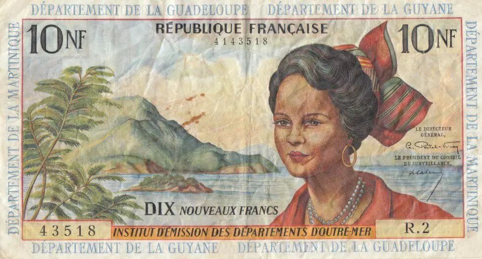 Banknote French Antilles 10 NF Girl, sugar cane - 1962