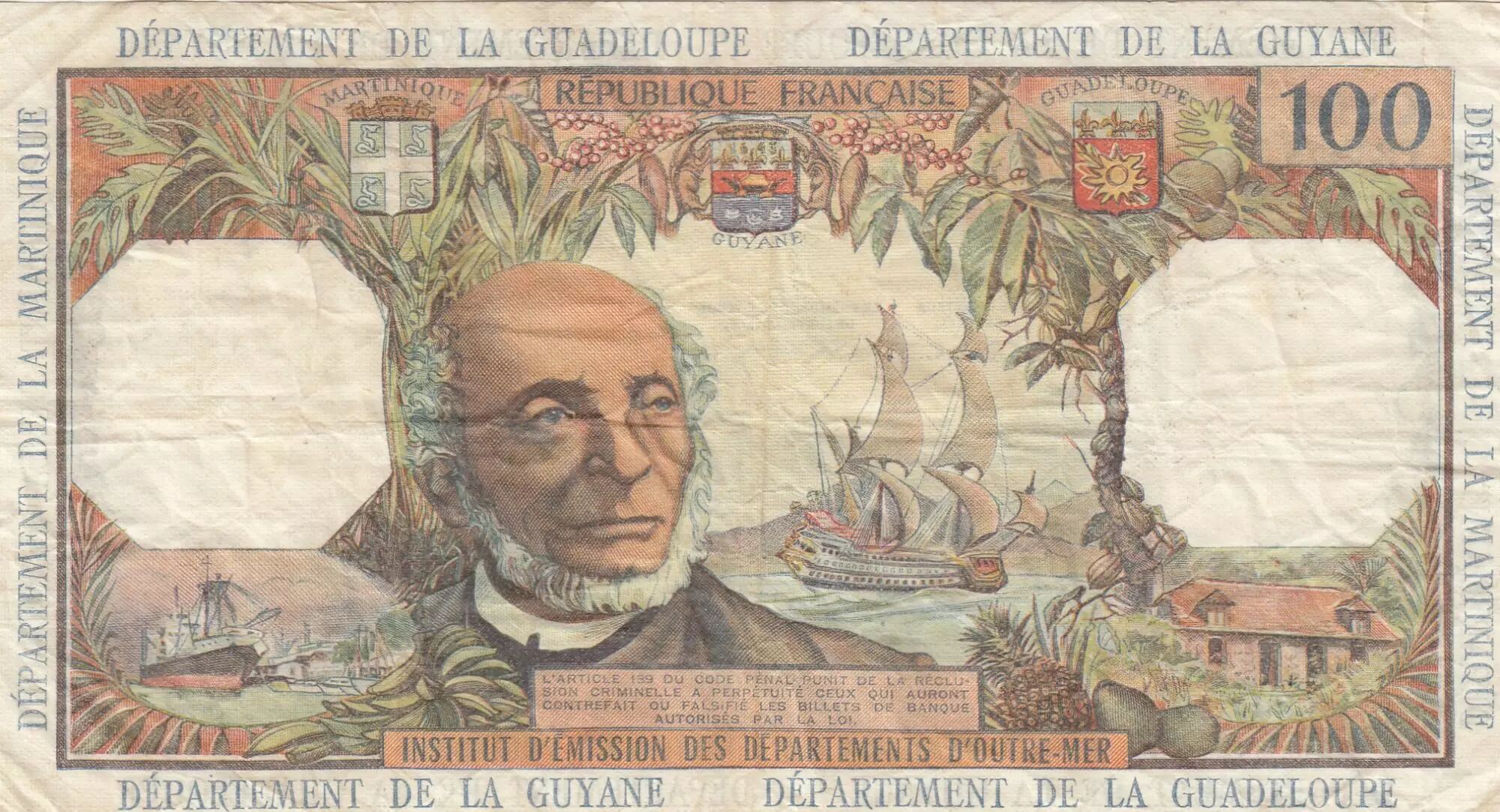Home > > French Antilles 100 Francs - Victor Schoelcher - ND (1964) - Serial S.2 - P.10b
