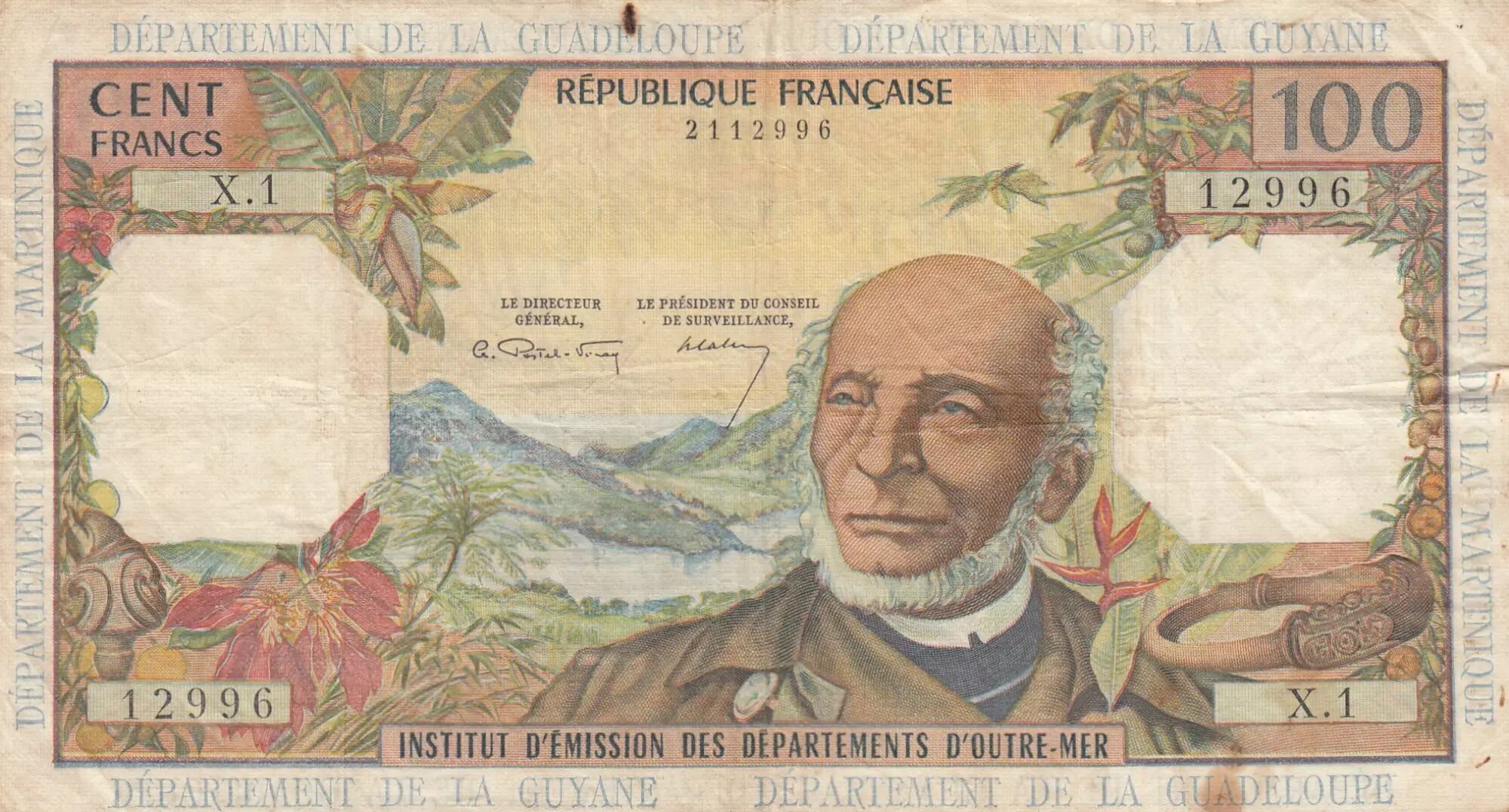 Home > > French Antilles 100 Francs Victor Schoelcher - ND (1964) - Serial X.1 - VF - P.10a - 1st signatures