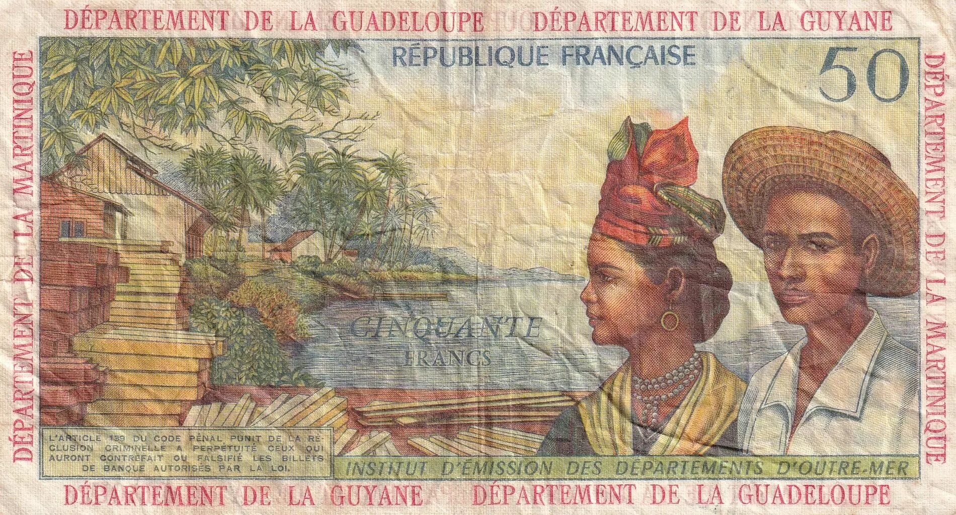 Home > > French Antilles 50 Francs - Banana harvest - ND (1964) - Serial U.2 - P.9 b