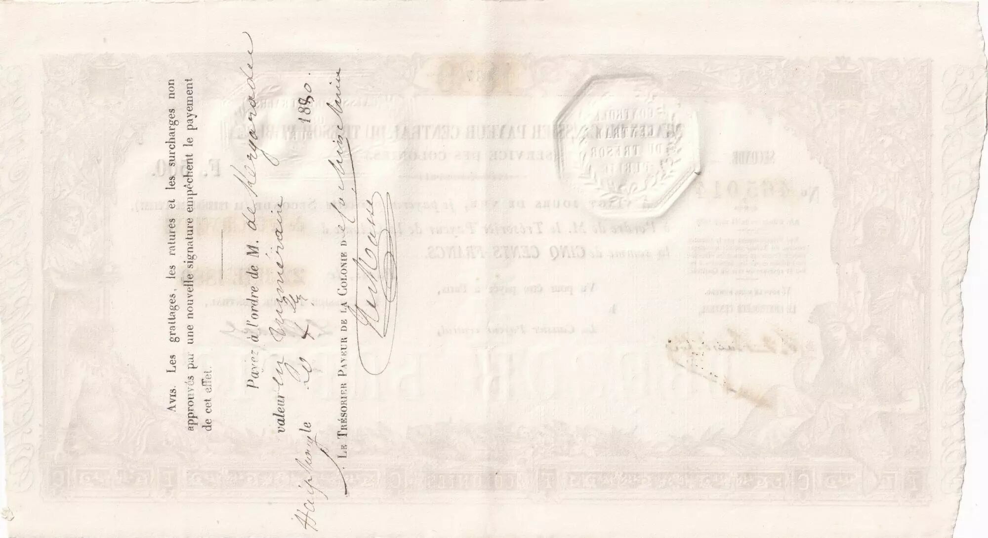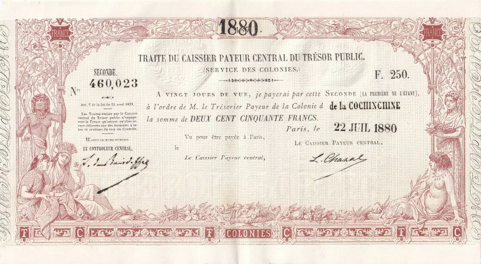 Home > > French Cochin-China 250 Francs - Traite du Trésor Public - Cochinchine - Sign. Chazal - 22-07-1880