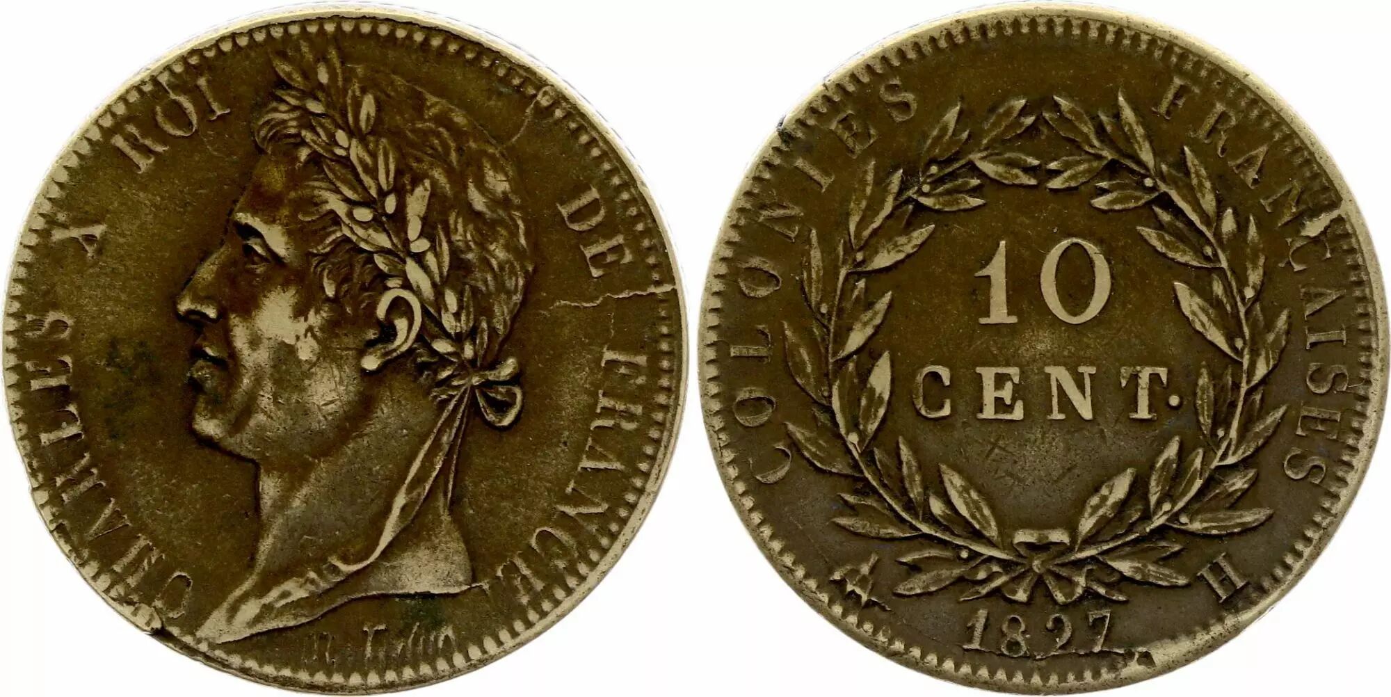Home > > French Colonies 10 Centimes Charles X - 1827 H La Rochelle - VF