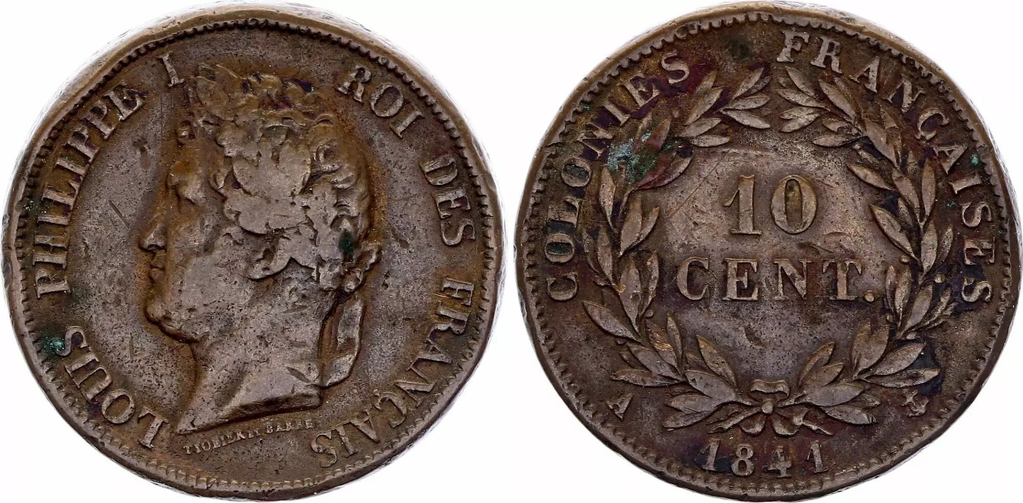 Home > > French Colonies 10 Centimes Louis-Philippe I - 1841 A Paris