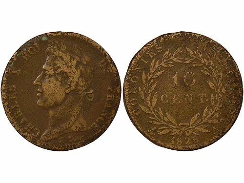 Home > World Coins > Currencies of the Americas > French Colonies > French Colonies Guyane, Charles X - 10 Centimes - 1828 A Paris