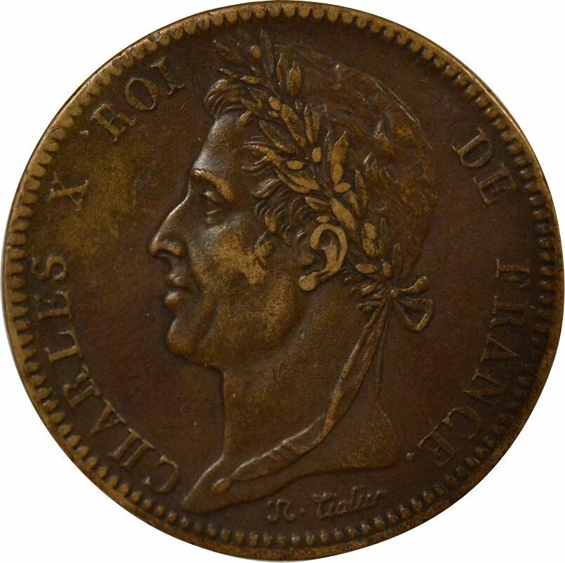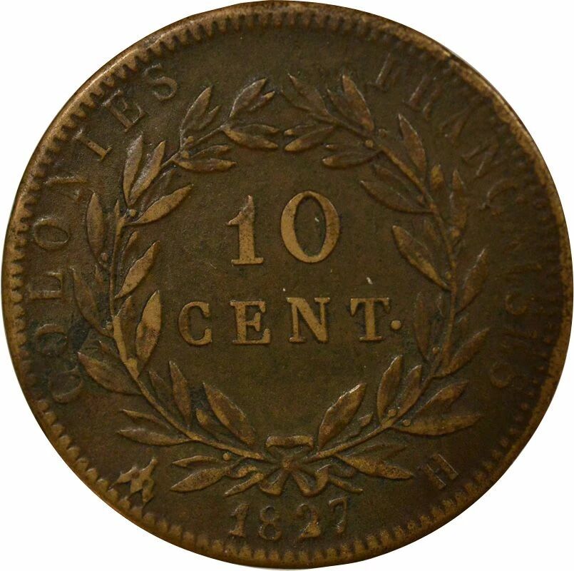 Home > World Coins > Currencies of the Americas > French Colonies > French Colonies Martinique & Guadeloupe, Charles X - 10 Centimes 1827 H La Rochelle