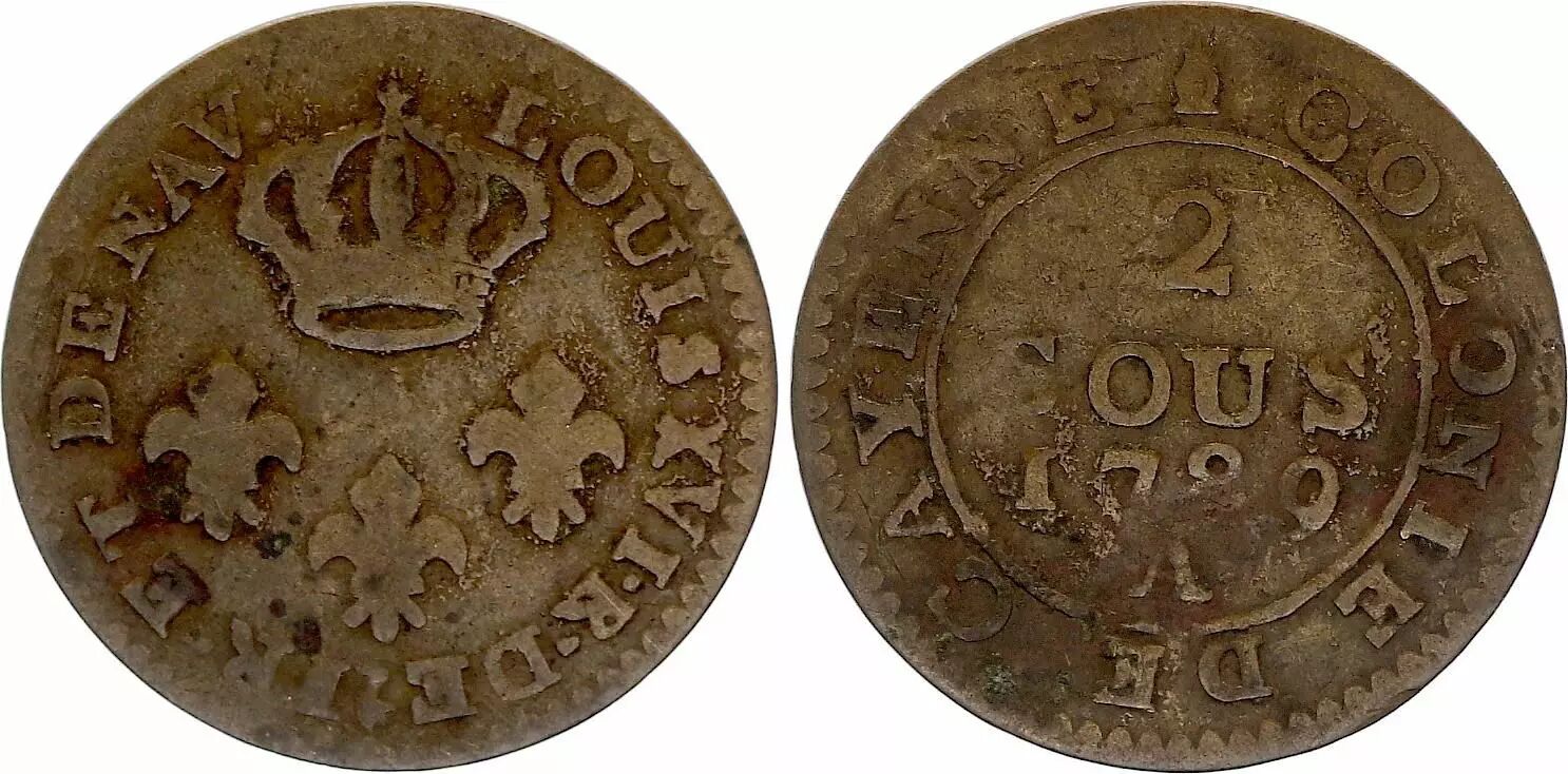 Home > > French Guiana 2 Sous Cayenne - French Colonies - 1789 - Period False - KM.18 - Lec.20