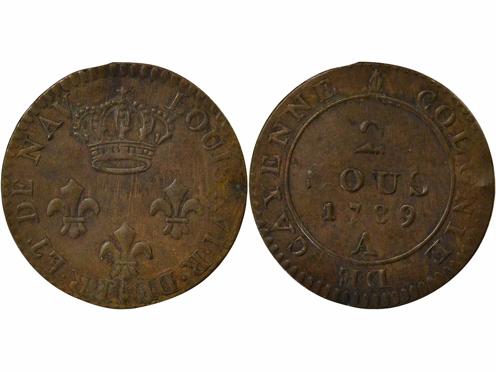 Home > World Coins > Currencies of the Americas > French Colonies > French Guiana Cayenne, Louis XVI - 2 Sous - 1789 A Paris
