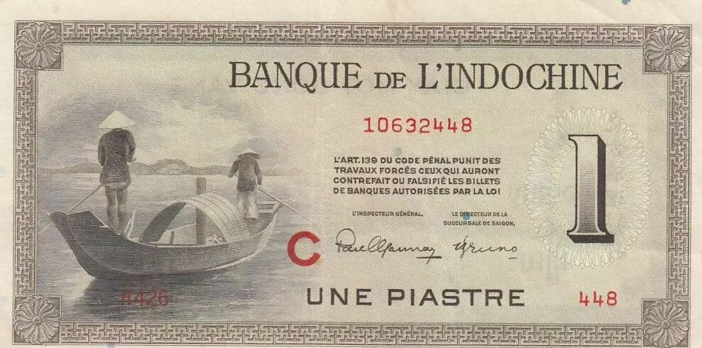 Home > > French Indo-China 1 Piastre - Men with boat - ND (1945) - Letter C - Serial H426