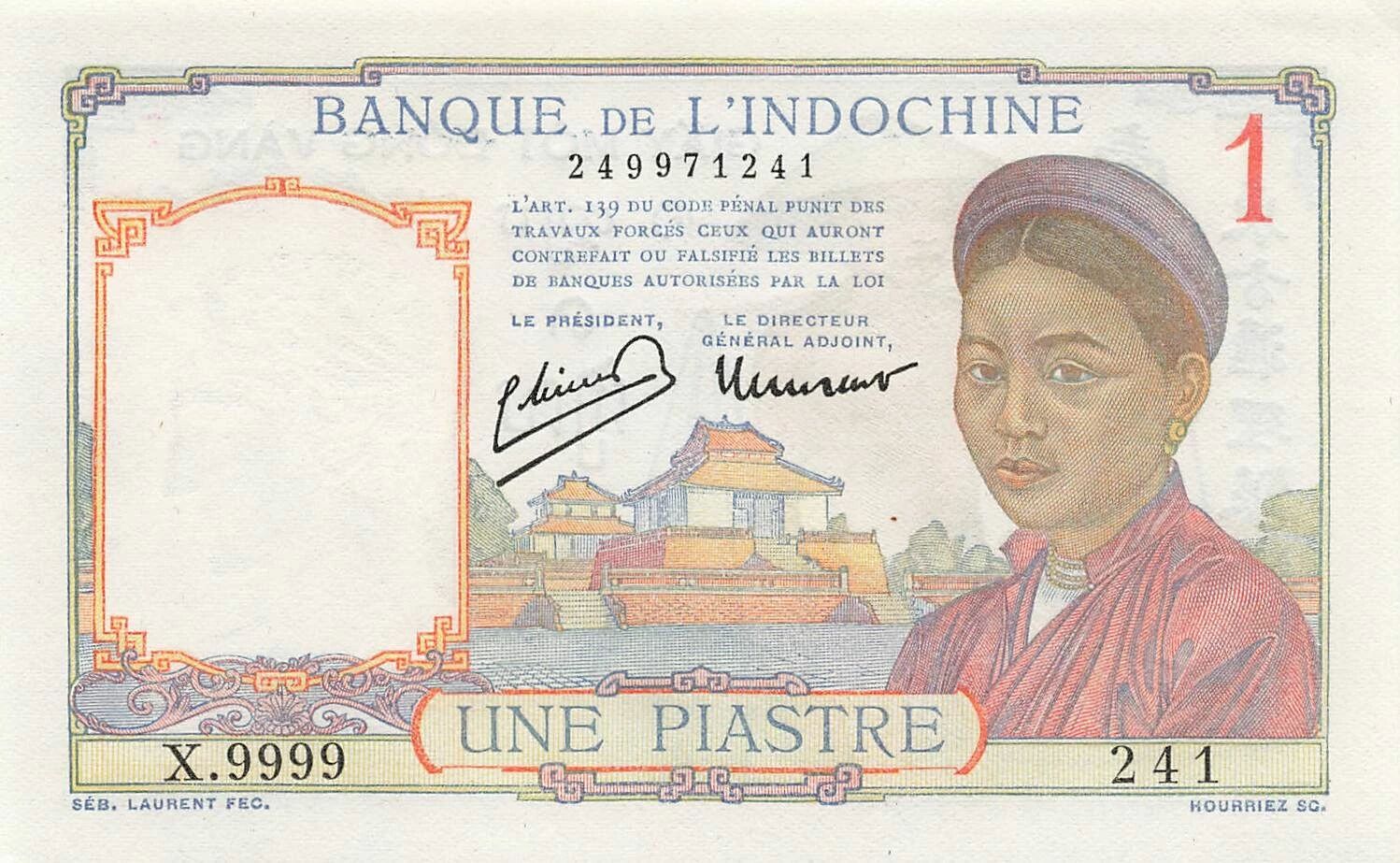 Home > World Banknotes > Asian Banknotes > French Indochina > French Indo-China 1 Piastre - ND (1949) - P.54e