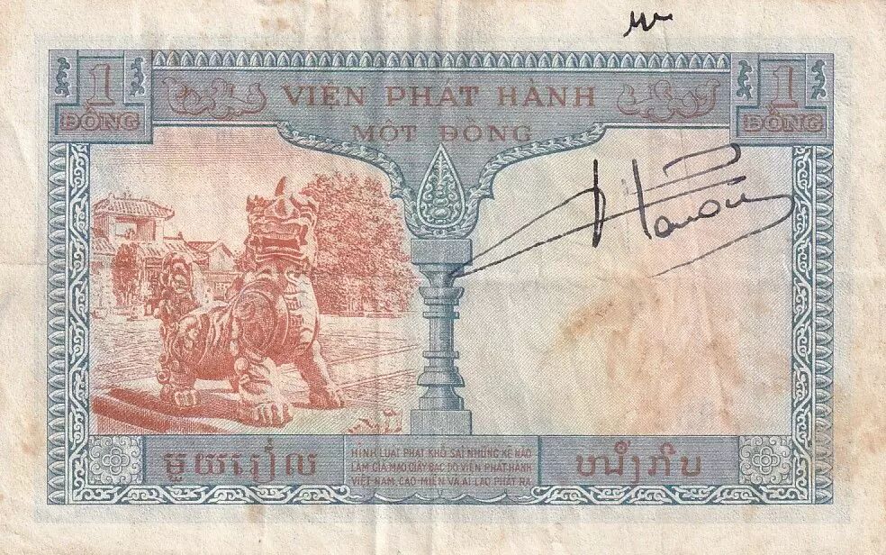 The 1 Piastre banknote, issued in 1954 for Vietnam and part of the R.33 series, is a testament to the era of French Indochina. This banknote features distinct visual characteristics on both sides.