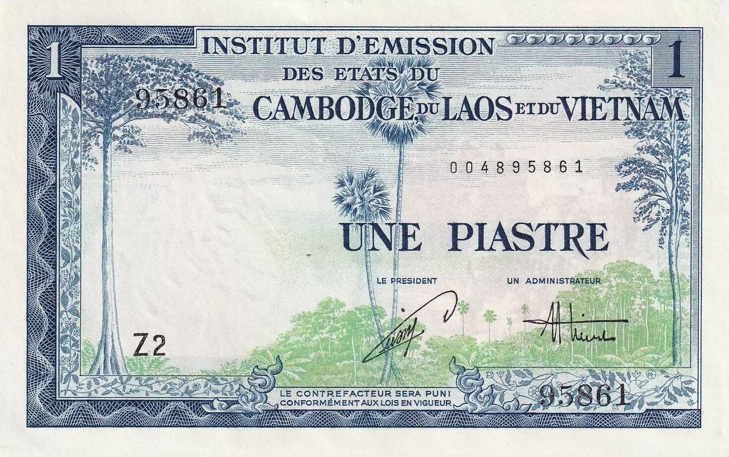 Banknote French Indo-China 1 Piastre - Trees - ND (1954) - Série Z.2 - P.105