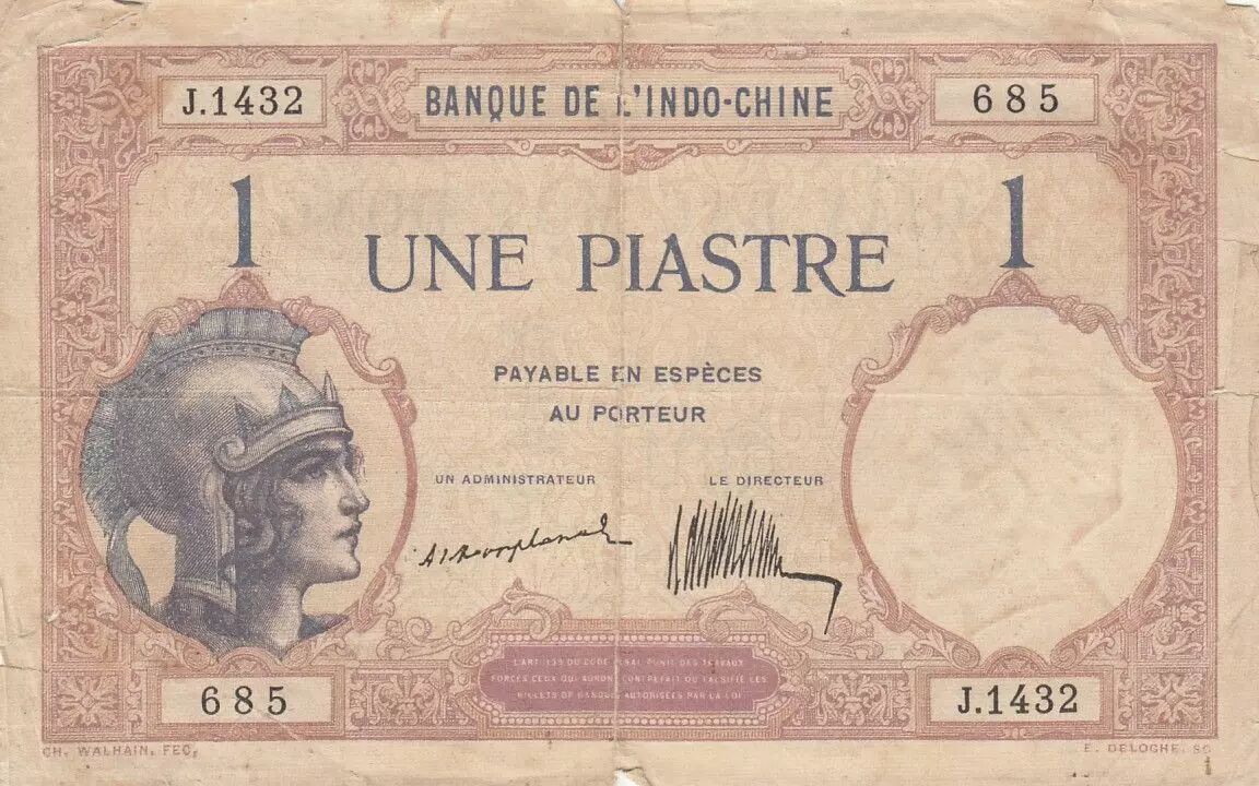 Home > > French Indo-China 1 Piastre - Walhain - Serial J.1432 - B+ - 1927