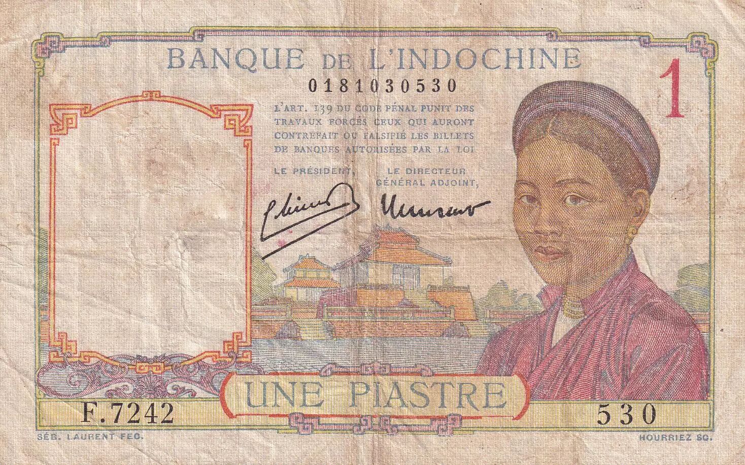 Banknote French Indo-China 1 Piastre - Woman - Temple - ND (1936) - Serial F.7242 - P.54c
