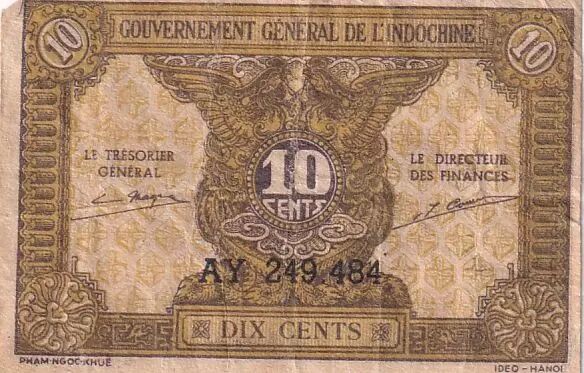 Home > > French Indo-China 10 Cents - Brown - ND (1942) - Serial AY - P.89a