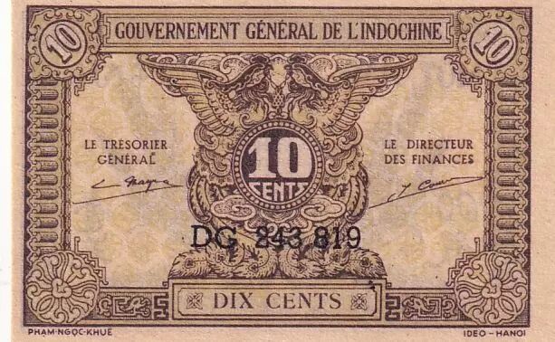 Home > > French Indo-China 10 Cents - Brown - ND (1942) - Serial DG - P.89a