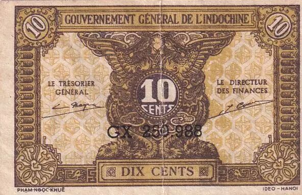 Home > > French Indo-China 10 Cents - Brown - ND (1942) - Serial GX - P.89a