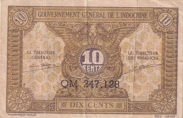 Home > > French Indo-China 10 Cents - Brown - ND (1942) - Serial QM - P.89a