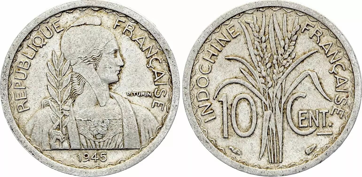 Coin French Indo-China 10 Cents Marian - Turin - 1945