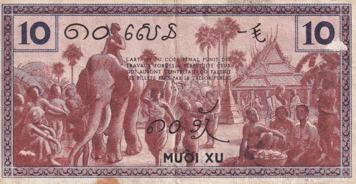 Banknote French Indo-China 10 Cents - Temple - Village scene - ND (1939) - P.85d