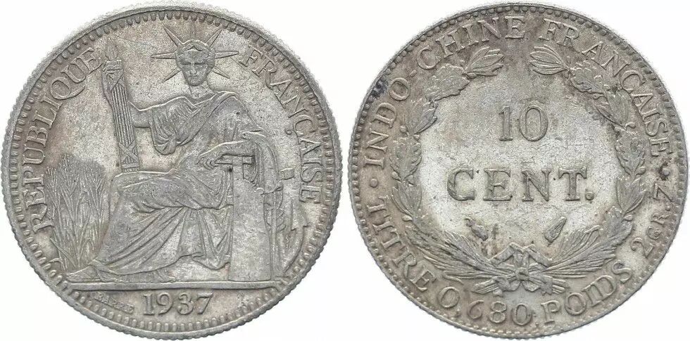 Home > World Coins > Asian Coins > French Indochina > French Indo-China 10 Cents Woman with laurel - A-Paris - 1937