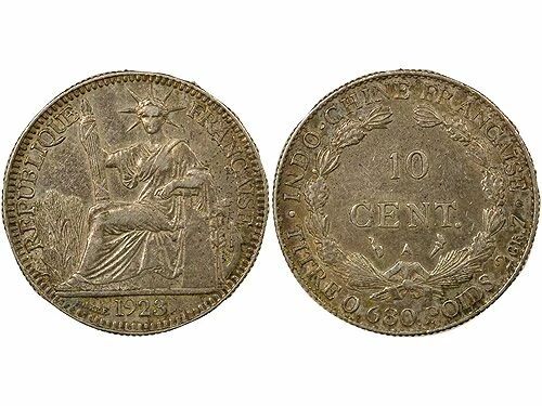 Home > World Coins > Asian Coins > French Indochina > French Indo-China 10 Silver Centiemes - 1923 A Paris